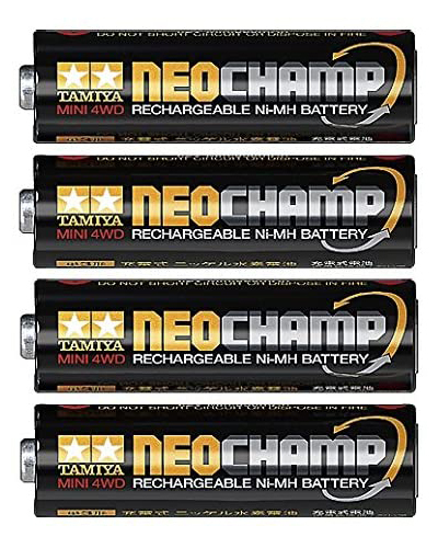 ミニ四駆はもちろん、電動RCカー「スターユニット」の走行用電源にも便利な充電池ネオチャンプ4本と急速充電器のセット。