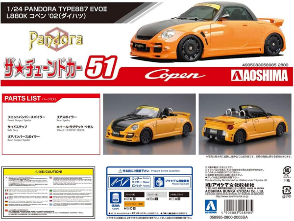 青島文化教材社「1/24ザ・チューンドカーシリーズNo.51ダイハツPANDORA TYPE887 EVOII L880Kコペン2002」のプラモデルです。