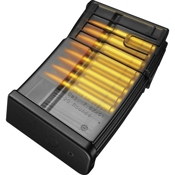 内部の7.62×51mm弾が透ける様を再現したシースルータイプの次世代電動ガンHK417用マガジン。
