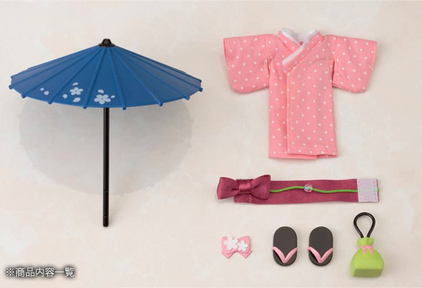 サイズ/仕様:セット内容:和傘、着物、帯、下駄、巾着、髪飾り