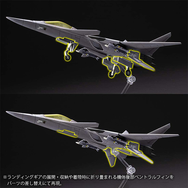 着陸時に折り畳まれる機体後部ベントラルフィンをパーツの差し替えにて再現しております。
