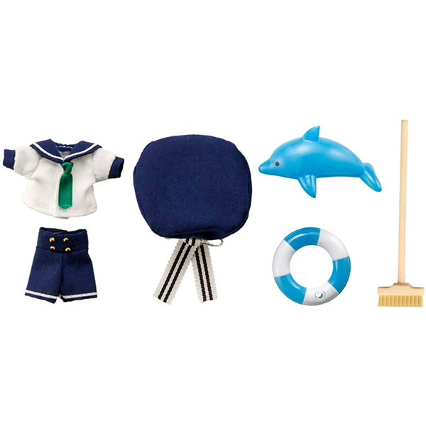 サイズ/仕様:セット内容:セーラーブラウス、半ズボン、帽子、イルカ(水色)、デッキブラシ、浮き輪(水色)