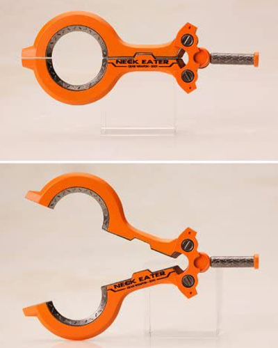 特徴的武器である「NECK EATER」は開閉ギミックによる相手の首を刈り取るアクションを再現可能!グローブと脚部に装備されたインパクト・ナイフはパーツの差し替えにて「収納モード」と「攻撃モード」をお楽しみ頂けます。