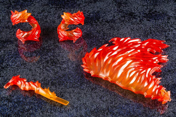ライジングファイアを取得し、燃える炎のような赤を基調とした本体色となったエックスと、ド派手な新規エフェクトパーツで劇中の攻撃シーンを再現!さらに、ボーナスパーツとして強敵マグマード・ドラグーンから同じく入手可能なゼロ専用のラーニング技「龍炎刃」再現用のエフェクトパーツも付属!<付属品>炎の渦エフェクト(左右分)、ライジングファイア再現用アタッチメントパーツ、「龍炎刃」再現用エフェクトパーツ、差し替え顔パーツ3種(正面向き通常顔・右向き食いしばり顔・左向き咆哮顔)、差し替え用エックスバスター、差し替えハンドパーツ3種(握り手・平手・添え手)、チャージショットエフェクトパーツ