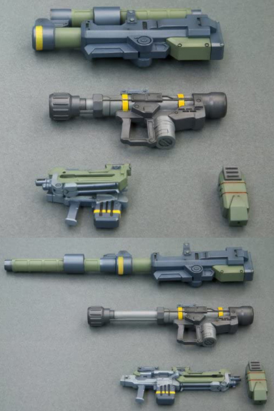 ゲームの特徴である武器の装備ももちろん出来、胴体左右や前腕のマウンター、榴弾砲は設定どおり背部のマウンターに装備可能。