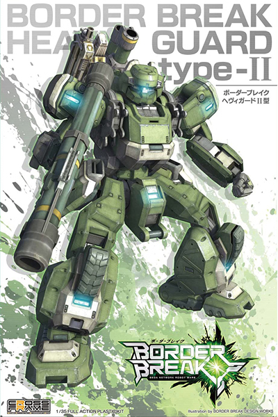 全国絶賛稼働中のハイスピードロボットチームバトル「ボーダーブレイク」より、1/35「ヘヴィガードII型」が重火力兵装仕様で発売決定!他の機体との組み合わせで複数の機体が再現可能。