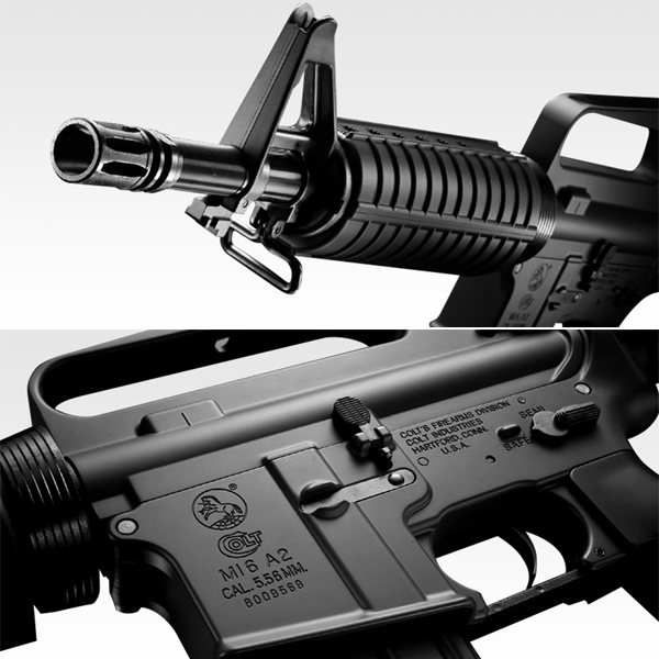 M16A2ではデザインこそA1と同じものの、NATOの統一弾変更にともなって内部メカニズムや強度向上について全く別モノと言えるほどの大幅な変更がされました。