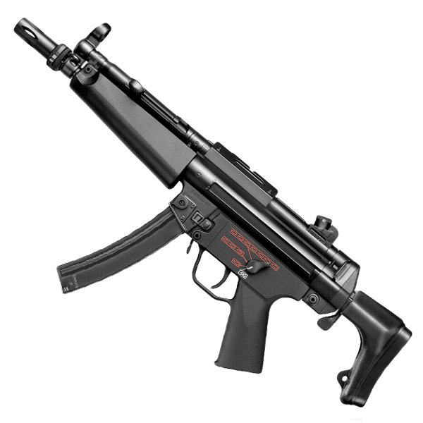 1965年に当時の西ドイツで生まれたH&K社のMP5は、同社G3の発射システムを応用した抜群の命中精度を誇るサブマシンガンです。