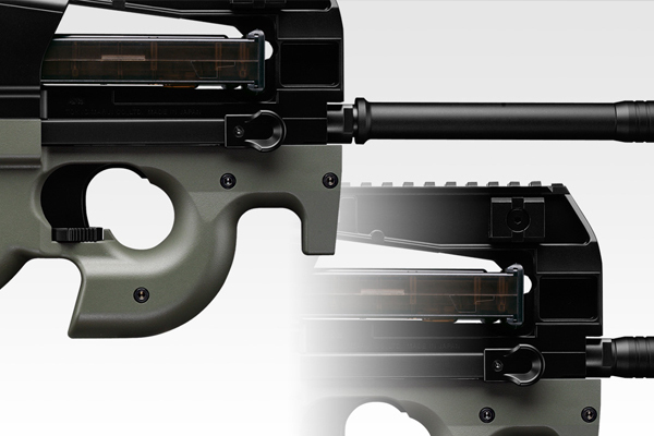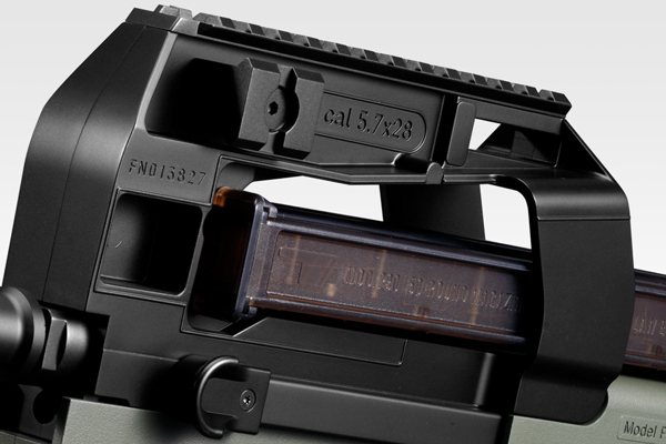 新たに「パワーが大きく反動が少ないライフル弾なみの貫通力」をもつ5.7mm×28弾を開発したFN社は、この弾を使用するPDW「P90」を1988年に発表。