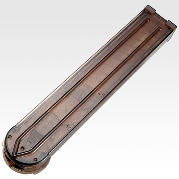 サイズ/仕様:全長:667mm/550mm(ショートバレル時)、銃身長:247mm、重量:1918g/1900g(ショートバレル時)、弾丸:6mmBB(0.2〜0.25g)、動力源:8.4Vニッケル水素1300MAHミニSバッテリー、装弾数:300発、種類:サブマシンガン/PDW
