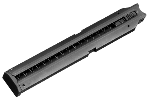 サイズ/仕様:全長:215mm、銃身長115mm、重量:685g(空のマガジンとバッテリーを装着した場合)、弾丸:6mmBB(0.2〜0.25g)、動力源:7.2Vニッケル水素マイクロ500バッテリー、装弾数:30発、種類:ハンドガン(オートマチック)