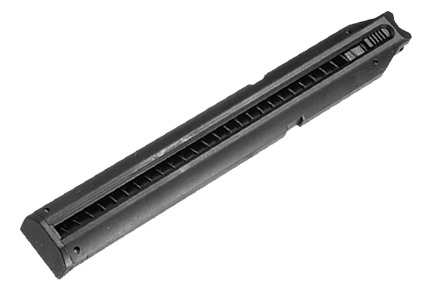 サイズ/仕様:全長:250mm、銃身長122mm、重量:810g(バッテリーをセットした状態の重量です)、弾丸:6mmBB(0.2〜0.25g)、動力源:7.2Vニッケル水素マイクロ500バッテリー、装弾数:40発、種類:ハンドガン(オートマチック)