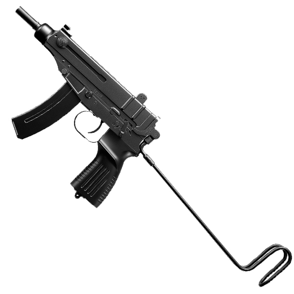 1961年にチェコスロバキアの国営工場で生産を開始したVz.61(通称スコーピオン)は、発射の衝撃やマズルのはね上がりをおさえるため、威力をおさえた小口径.32ACP(7.65×17弾)仕様になっています。