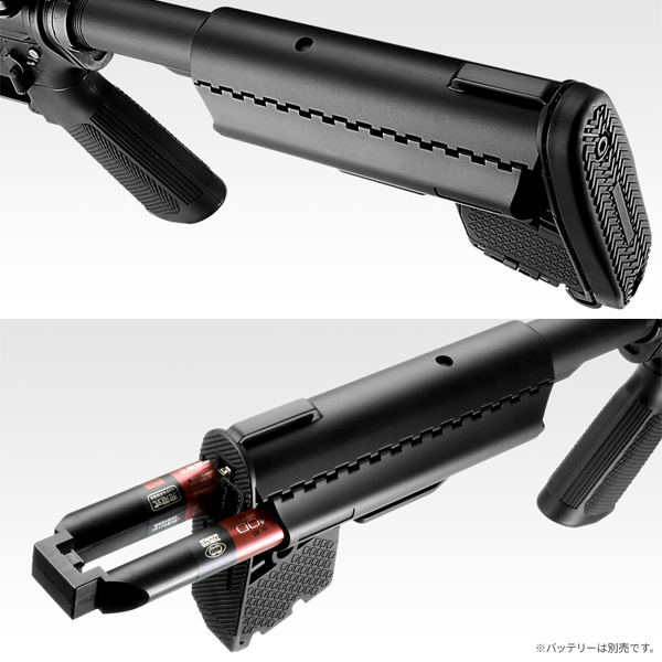 サイズ/仕様:全長:705mm/780mm(ストック伸長時)、銃身長275mm、重量:3370g(空マガジン、バッテリー含む)、弾丸:6mmBB(0.2〜0.28g)、動力源:8.4Vニッケル水素1300MAH SOPMODバッテリー、装弾数:82発、種類:アサルトライフル
