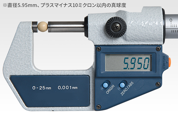 スチールベアリング製造工法による高精密加工を採用し、直径5.95mm(誤差プラスマイナス10ミクロン以内)を実現し、弾の個体差も格段に減少しています。