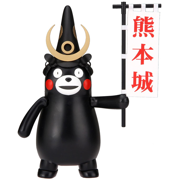 熊本城にゆかりある「加藤清正」公の高烏帽子兜を纏い、幟を持った愛らしい姿を製品化!発売中の「鎧兜バージョン」とは異なる新規金型の兜を再現!熊本県PRキャラクターとして九州新幹線全通日に誕生したくまモン。