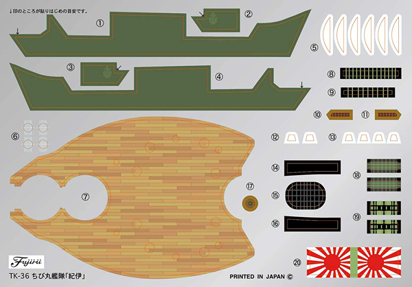 製品は、大戦後期の対潜迷彩を施した姿とし、主要部品は明るい緑色(外舷22号色)で成型。
