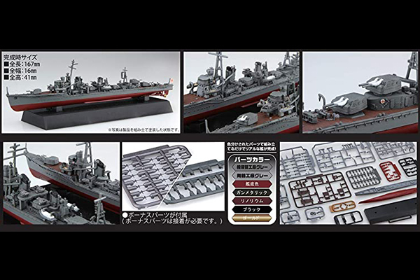 日本海軍の量産された艦隊型駆逐艦、最終完成形である「夕雲型」の展示台が新しくなって登場!形状を見直し、新設計で安定性がアップ!台座が新しくリニューアル!組み立て中は裏返してパーツ入れとして使用できます。