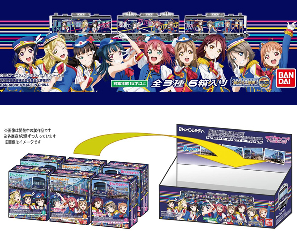 2017年に運行し大好評を博したラッピング電車第1弾に引き続き、3rd シングル「HAPPY PARTY TRAIN」の発売(4月5日)に合わせて、フルラッピングで運行された伊豆箱根鉄道3000系がBトレに登場!先頭車前面に貼れるヘッドマークステッカー全10種付き!美麗イラストのインナーボックス(6個入り)付です!全3種6箱入り
