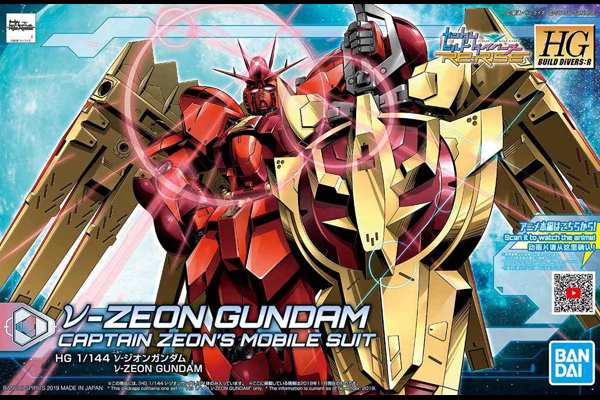 『ガンダムビルドダイバーズRe:RISE』 より、ジオン軍のエンブレムを模した大剣を携えた赤きνガンダムが登場!背部にはケープスラスターを4個装備。