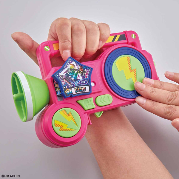 全てのピカちんバッジを検出可能なアイテム登場!ピカちんバッジ差し込みスロットにバッジをセットしてサウンドを呼び出せ!ターンテーブルの機能を持つディスクを回転させれば、音声を高くしたり低くしたりできる!DJ遊びにチャレンジ!バッジをセットすれば、すべてのピカちんバッジのキャラサウンドを召喚することができる!「フリー合いの手ボタン」「サウンド選択ボタン」も使って遊びつくせ!サウンドと一緒に7色に光るLEDが点滅!