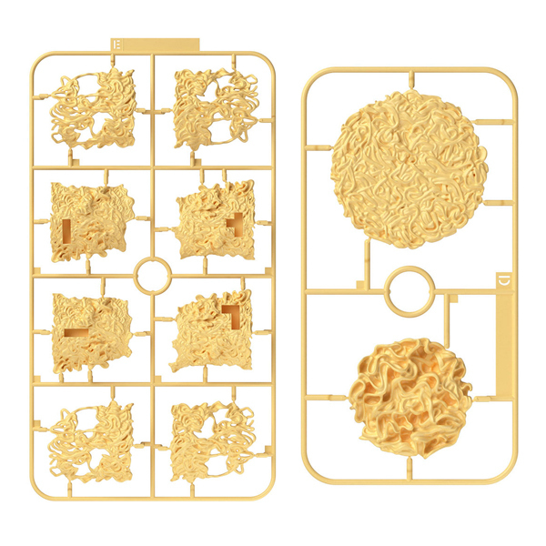 実物の麺から3Dスキャンを取り、精密な造形でプラパーツ化。