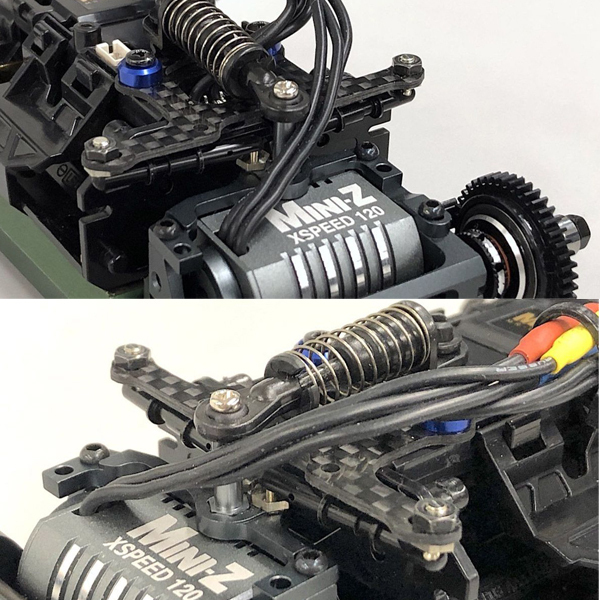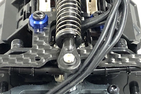 ピッチングとロールを同じプレートで制御する従来のフリクションンダンパーと異なり、1/12レーシングなどで採用されるグリス式インナーチューブダンパーを採用し、ロールを独立して制御。